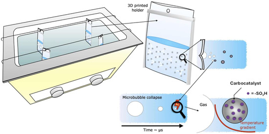 Schematic representation of the effect of cavitation intensifying bags (BuBble® bags) in heterogeneous catalysis. Adapted with permission from the literature [38].