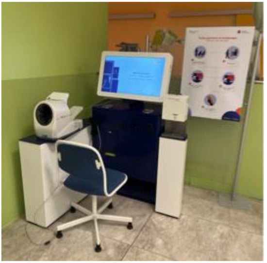 Health pods are new systems that include small spaces equipped with medical devices where users can measure several biomedical parameters related to their health status and receive other medical services [8]. The presence (or not) of a healthcare operator to support or lead the procedure is one important variable. In the proposed case study, where the reduction in effort of the nurses is one of the main targets, the preferred solution of not having the operator is mandatory. In case of absence, the subject has to carry out the procedure in self-mode. In this case, a very efficient, intuitive, and engaging user experience/user interface (UX/UI) is needed to avoid procedural errors and obtain reliable measurements. For this reason, after a deep task analysis and co-design workshop with users (patients and nurses), the CAPSULA Triage system uses an engaging UI that guides step-by-step the patient in the process: images and animations of devices, measuring procedures, status of the systems with confirmation of having properly completed each measure, meaning of values, and sequences of actions to be carried out are proposed to the patient so that the efficiency and reliability of operation are achieved. This will be further analyzed and discussed in the experimental outcomes.