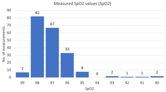 Measured data of pulse oximetry (% of blood oxygen saturation).
