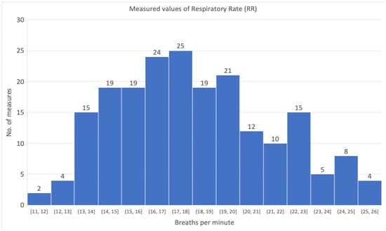 RR data were computed from the ECG track through an integrated ECG-Derived-Respiration algorithm. All the data are in the normalcy range and in line with the expected values (Figure 8). Again, for this vital sign, the overall assessment of reliability is very good.