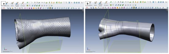 CAD models of the wrist splint resulting from creating (a) a denser and (b) a sparser mesh of splines in Geomagic Design X.