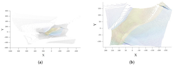 Figure 9a shows the initial point cloud corresponding to the analyzed ulcer. The preliminary preprocessing method implemented resulted in a mostly accurate alignment of the FOV with respect to the RGB camera, as depicted in Figure 9b.