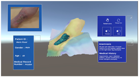 In this sense, a preliminary XR environment exploiting automatic skin ulcer identification was developed. The prototype of the designed environment’s Graphical User Interface (GUI) is shown in Figure 4.