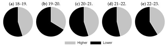 First of all, the rate between the participants who complete the survey and the total number of students of each subject during the last years is described in Table 2. Except for Course 22–23, the rest of the courses had a similar participant rate. Having an almost identical number of respondents will make it easier to draw conclusions about evolution over time.