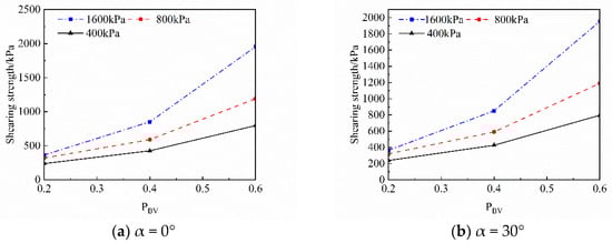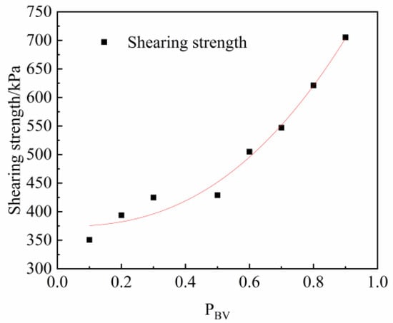 According to Figure 13, the relationship between PBV and shear strength can be expressed by the following formula (Equation (3)):