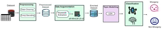 This section presents a comprehensive framework designed to detect and predict online misogyny. As shown in Figure 1, the framework integrates preprocessing, data augmentation, and various classification strategies to ensure accurate and reliable predictions. We will describe each step of the framework in detail in the following sections.