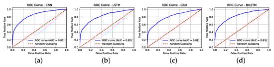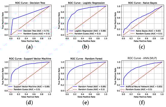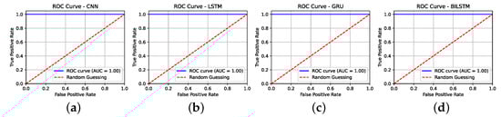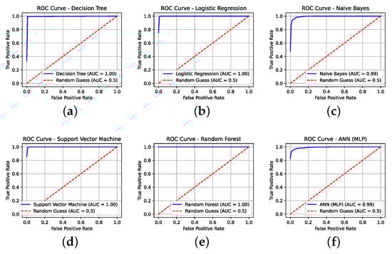 The evaluation metrics employed to assess the performance of the models—Precision, Recall, F1-Score, Accuracy, and ROC AUC—are crucial for assessing different aspects of model performance [], particularly in complex and imbalanced datasets. These are calculated as shown in the following:
