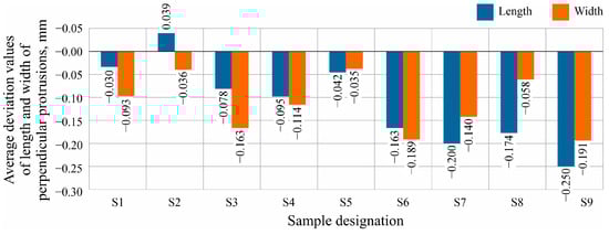 Figure 14 presents a chart of length and width deviation of perpendicular protrusions for the nine samples measured.