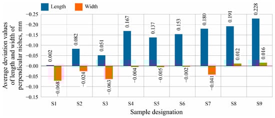 Figure 15 presents a chart of length and width deviation of perpendicular niches for the nine samples measured.