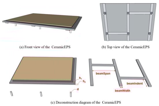 Raised floors are typically composed of supporting surfaces, beams, and adjustable supports, yet the influence of these elements on pedestrian comfort remains to be fully understood. Practical experience suggests that the thickness of the supporting surface may have a positive correlation with pedestrian comfort, but further qualitative and quantitative analysis is needed to explore the impact of panel size, support foot spacing, beam spacing, and other factors. This study focuses specifically on raised floors within prefab bathroom units, necessitating waterproof features, and therefore utilizes an integrated proofed plate design. The size of the supporting surface is tailored to suit actual engineering requirements and is not included in the overall structural optimization scope. Drawing from the case of CeramicEPS, optimization analysis is conducted in collaboration with manufacturers to identify parts that can be optimized, taking into consideration production and installation constraints. Table 7 and Figure 10 present the optimized components and their corresponding size ranges, demonstrating the efforts of this research to enhance the function and comfort of raised floors in prefab bathroom units.