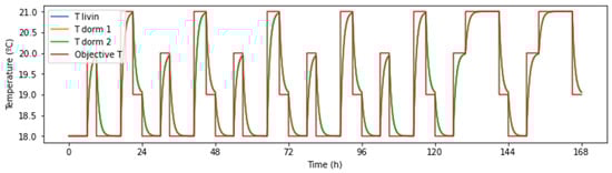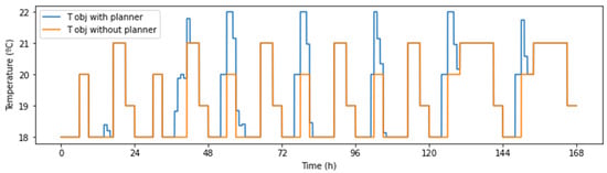 Then, after running the model for a representative winter week, and as a result of the planner, the new target temperature profile is as indicated in