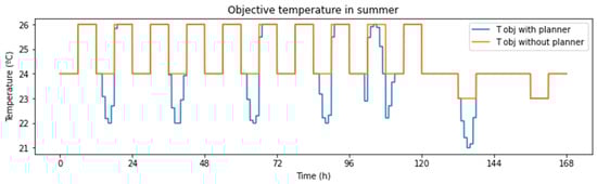 After running the model for a representative summer week, and as a result of the planner, the new target temperature profile is as indicated in