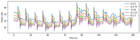 Table 1 presents the cumulative energy consumption variation in one week for the different thermal masses compared to the case study. It clearly shows that higher thermal mass results in lower cumulative energy consumption over time. This is because the system requires less effort to maintain thermal stability. Conversely, lower thermal mass results in higher cumulative consumption, because the system works harder to compensate for rapid temperature changes.