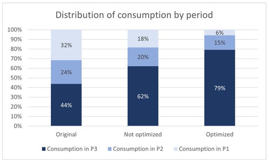 Furthermore, if we analyze the energy balance by electricity periods, we can observe a significant reduction in consumption during the most expensive periods, P1 and P2 of the electricity tariff, as shown in the following