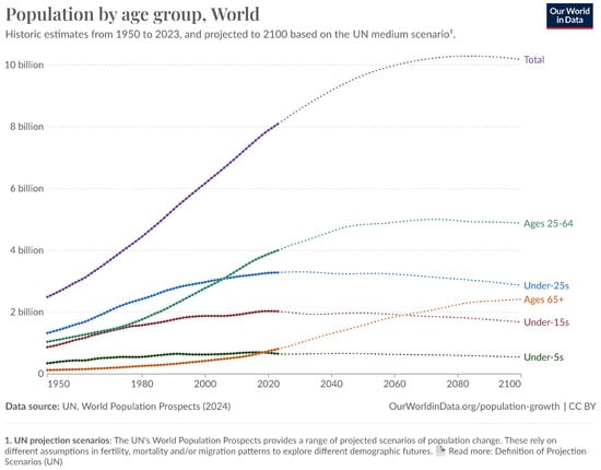 - Ritchie, H.; Roser, M. Age Structure. Our World in Data. 2019. Available online: https://ourworldindata.org/age-structure (accessed on 31 December 2024).