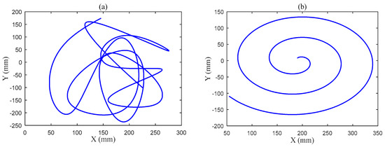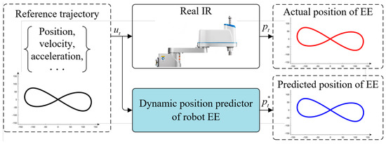 Industrial robots (IRs) are an important part of intelligent manufacturing, which is being increasingly applied to fields with high precision and efficiency requirements, such as robot machining [1,2], assembly [3], and laser cutting [4,5]. Dynamic response is one of the most important indictors of IRs in these applications. Accurate dynamic models and response prediction of robots are prerequisites for processing optimization, trajectory planning, and quality prediction [6] before actual operation. Since IRs usually operate in position control mode, the dynamic position prediction of an end-effector (EE) based on the reference input trajectory (Figure 1) plays a vital role in their performance optimization.