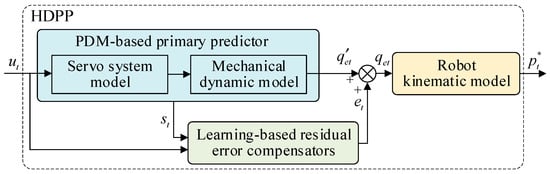 The overall structure of the proposed HDPP approach is shown in Figure 2. The input is the reference trajectory generated by motion planning of the robot controller. And the output is the predicted position of the robot EE at time t. HDPP consists of two modules, namely, a primary predictor based on a PDM and machine learning-based RECs. Therefore, the predicted value can be obtained by