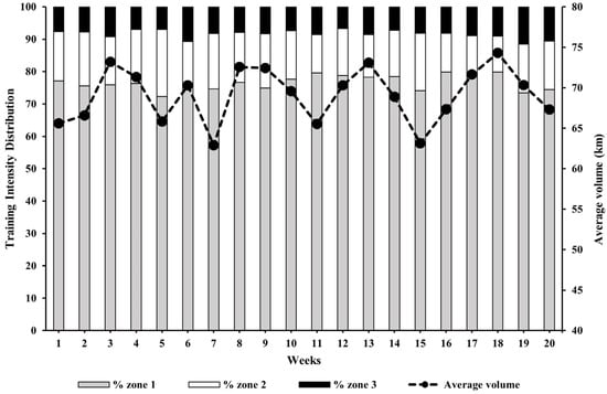 - Casado, A.; Gonzalez-Mohino, F.; Gonzalez-Rave, J.M.; Foster, C. Training Periodization, Methods, Intensity Distribution, and Volume in Highly Trained and Elite Distance Runners: A Systematic Review. Int. J. Sports Physiol. Perform. 2022, 17, 820–833. [Google Scholar] [CrossRef]