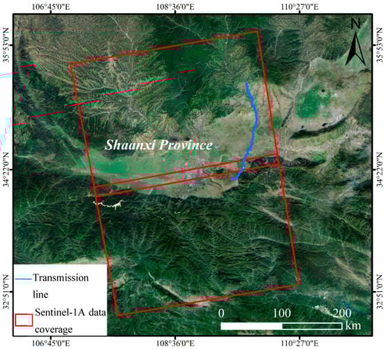 In this study, we selected SAR data from 4 February 2018 to 21 May 2023 for surface deformation monitoring. The data coverage is shown in Figure 2. Since the transmission line in the study area is relatively long, the data span two frames. In order to ensure high coherence of the data, the data had a temporal interval of 24 days per acquisition, using the interferometric wide swath (IW) slant-distance single look complex (SLC) mode, with a spatial resolution of 5 × 20 m and an incidence angle of 33.91°. The basic information of the data is shown in Table 1. In addition, the Shuttle Radar Topography Mission (SRTM) elevation DEM was used as external DEM data in this study to simulate and eliminate terrain phases in interferometric measurement and improve measurement accuracy. The SRTM is a mission implemented by NASA and NGA. It utilizes radar equipment aboard the Space Shuttle to measure surface elevation data using radar waves. Typically, there are two types of data: 1 arc-second (with a resolution of approximately 30 m) and 3 arc-seconds (with a resolution of approximately 90 m). In this study, we used the 30 m DEM data.