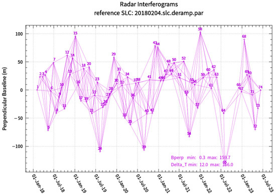 Assuming that N + 1 SAR images are obtained in the same area within a fixed time (t0,…, tN), M differential interferograms can be generated. The inequality definition of M is as follows: