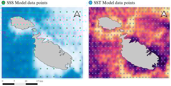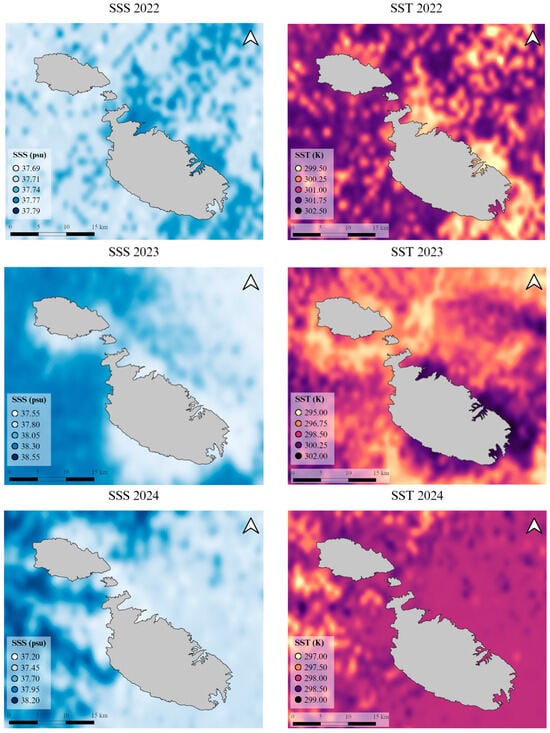29]. Consequently, these dynamics render the Maltese archipelago an ideal location for evaluating spatial and temporal variations in SSS and SST.
