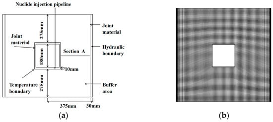 The numerical simulation model. (a) Geometric model and the boundary; (b) model meshing.