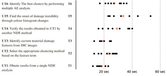 In Figure 12, we present a description of each user’s tasks and completion times. All participants completed each task within 53 s, with an average completion time of less than 34 s. Specifically, for UT1 and UT3, participants quickly grasped the essence of the problem and completed the tasks quickly, while for UT2, UT4, and UT6, they needed further familiarization with the operational flow before completing the tasks. We observed a significant increase in completion time for UT5 compared to the other tasks, primarily due to its greater complexity.