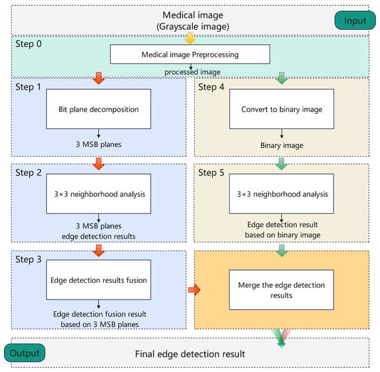 In the process of rapid development of modern medicine, medical image-assisted diagnosis has become an indispensable and important means. Medical images generally include images obtained through various imaging technologies, and common medical images include X-ray, computed tomography (CT), magnetic resonance imaging (MRI), ultrasound imaging, and nuclear medicine imaging [,,]. Medical images enable doctors to intuitively analyze the internal organ structure of the body, thus assisting them in diagnosing diseases and formulating treatment plans. In the process of medical image-assisted diagnosis, edge detection is a key technology: the precision and reliability of its edge detection are crucial in the whole diagnostic process [,].