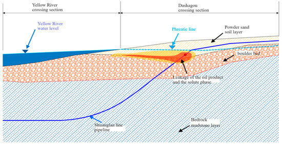 Liu, S.; Qiu, M.; Zhao, G.; Jia, M.; An, J.; Guo, X.; Lin, D.; Tian, Y.; Zhou, J. Numerical Simulation of Oil Pipeline Leakage Diffusion in Dashagou Yellow River Crossing Section. Appl. Sci. 2025, 15, 974. https://doi.org/10.3390/app15020974