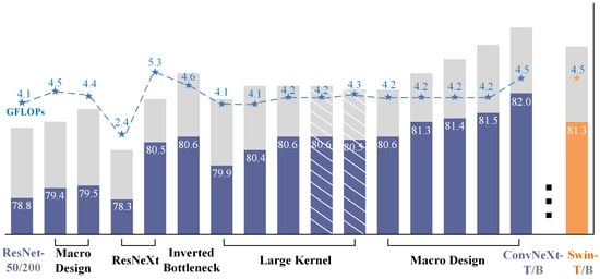 - Liu, Z.; Mao, H.; Wu, C.Y.; Feichtenhofer, C.; Darrell, T.; Xie, S. A convnet for the 2020s. In Proceedings of the IEEE/CVF Conference on Computer Vision and Pattern Recognition, New Orleans, LA, USA, 18–24 June 2022; pp. 11976–11986. [Google Scholar] [CrossRef]