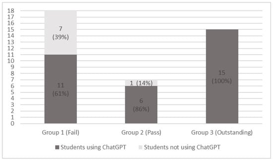 As mentioned before, the students can be grouped by their grades according to the scale previously mentioned (fail, pass and outstanding), leading to three groups. Figure 2 shows the results regarding the item ‘I did not use ChatGPT during the exam’ analyzed by groups.