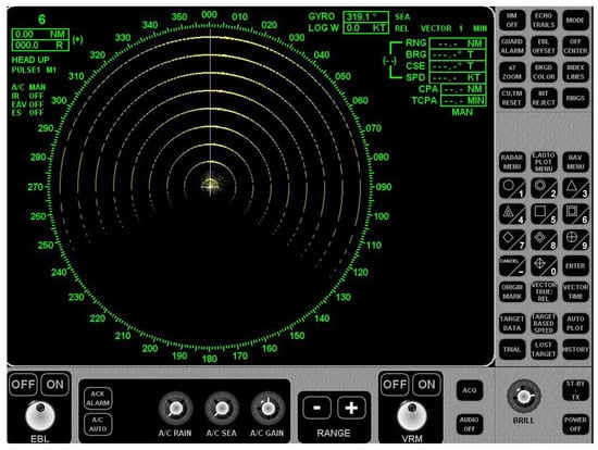 Its primary function is to receive reflected signals from obstacles (objects), allowing the navigator to make anti-collision decisions. Radar settings can be adjusted manually or automatically. In automatic mode, the radar adapts to changing weather conditions, using features such as gain or clutter filters (e.g., sea and rain clutter filters) to eliminate interference from sea waves or rain, thereby improving the radar image quality. However, if the radar image is cleared too much, small objects will also be removed. Figure 2 shows the appearance of the radar screen along with the control panel.