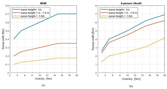 Corrected sweep width for searching in different weather conditions: (a) person in water (MOB); (b) liferaft.