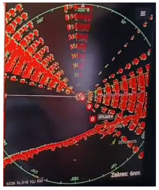 Research by other authors, presented in [], also highlights the problem of detecting the SART device and selecting appropriate radar settings. In their experiment, the device was tested at different heights and orientations. A test with various radar gain and clutter settings was also performed. The results of the study indicate that an incorrect range setting led to the non-detection of the SART device, and the choice of tuning had a significant impact on the radar image and the amount of interference.