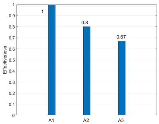 Effectiveness is a measure of success and is calculated as the ratio of the number of positive occurrences to the total number of attempts (Formula (1)).