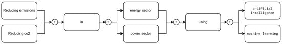 The review was conducted by utilizing the Google Scholar (https://scholar.google.com/ accessed on 14 January 2025) academic search engine. The search phrases were identified by first familiarizing ourselves with the topic by conducting a broad search around the subject and finding common terms used in the research papers that clearly fit in the topic of reducing CO2 emissions using AI methods in the energy sector. The search phrase "reducing emissions in energy sector using artificial intelligence” was identified as a good candidate for finding the relevant research papers. The Google Scholar search algorithm clearly includes some fuzzy searching logic as the search phrase also returned papers that used near-synonyms for the keywords in the search phrase. However, we decided not to trust the algorithm blindly and instead came up with one near-synonym for each of the keywords that were often used in the papers that were discovered in the preliminary searching stage. Figure 1 presents the used keywords and their near-synonyms and illustrates the logic of how the search phrases were constructed by concatenating the identified keywords with fixed components “in” and “using”. This resulted in 8 distinct search phrases, such as “reducing emissions in energy sector using artificial intelligence”, “reducing emissions in energy sector using machine learning”, and so on.