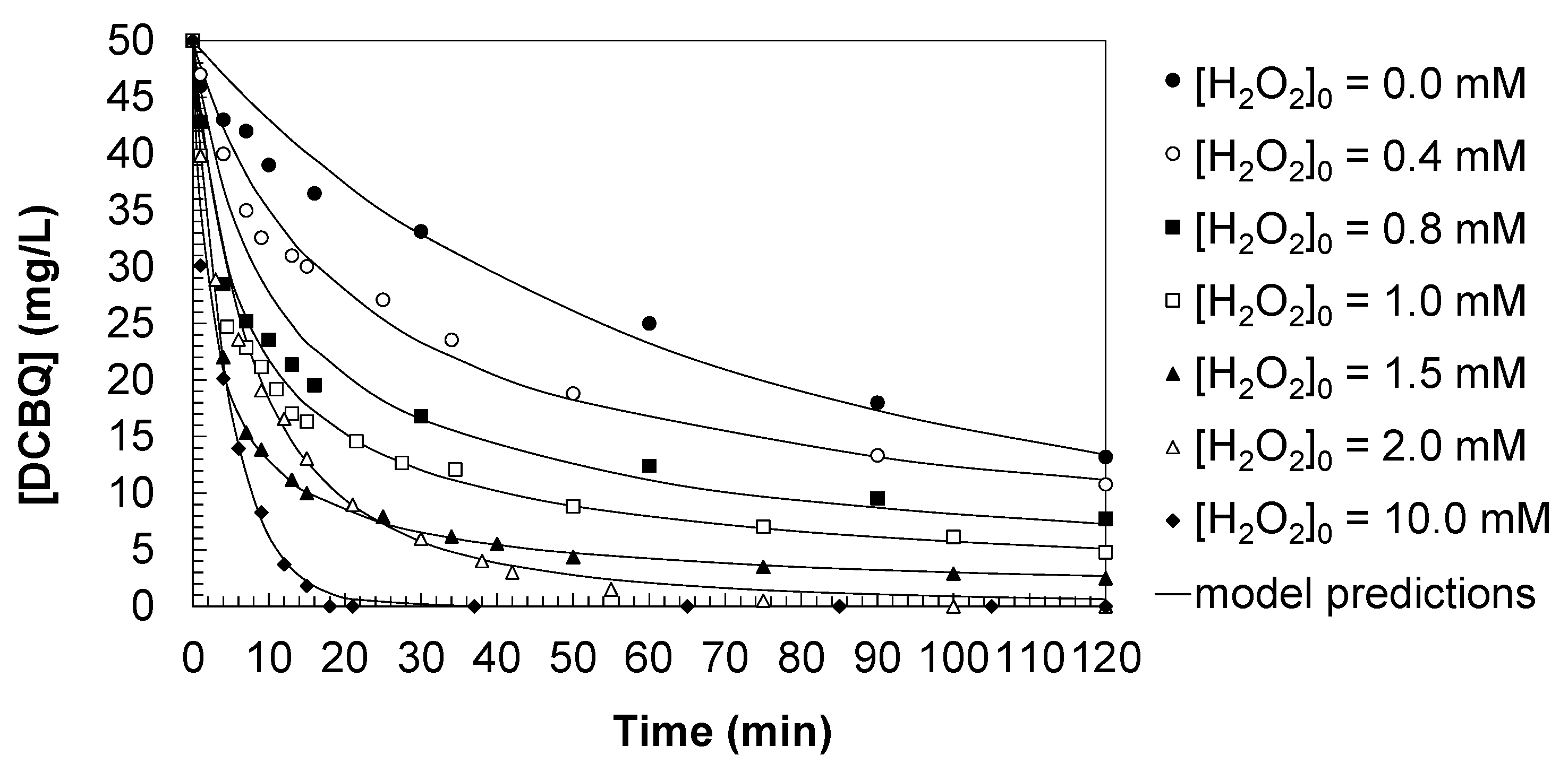 3.1. Kinetic Model for 2,6-Dichlorobenzoquinone Oxidation