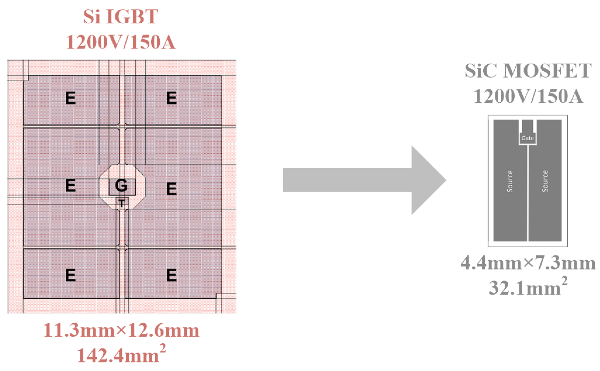 - The power module exhibits high symmetry in terms of terminal shape/position and chip layout.