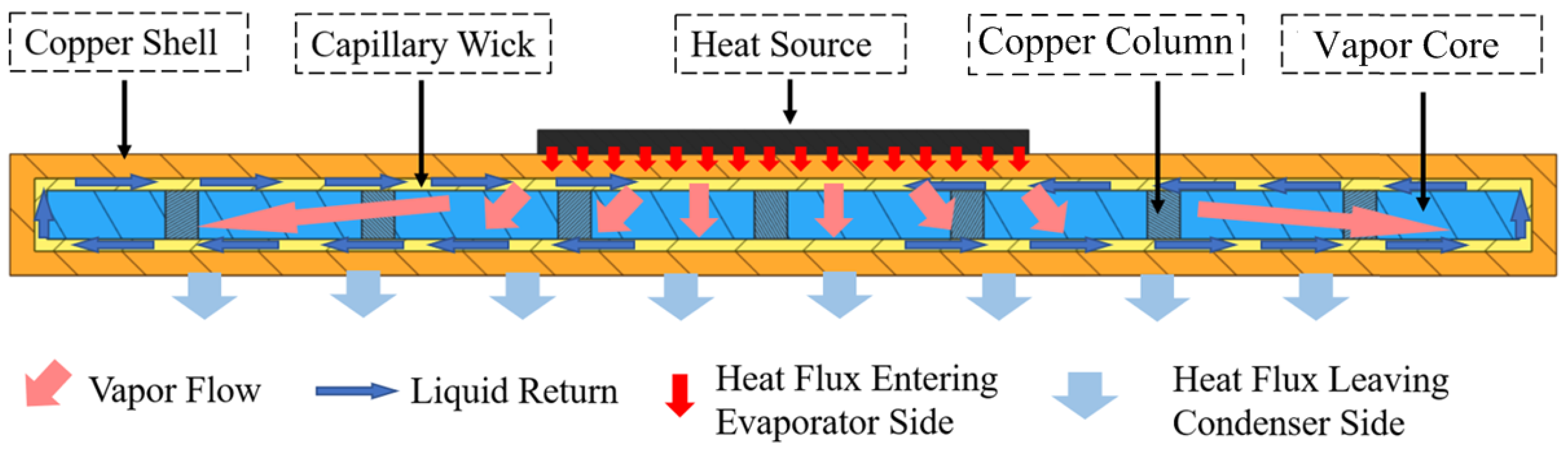 - Chen, Y.; Li, B.; Wang, X.; Wang, X.; Yan, Y.; Li, X.; Wang, Y.; Qi, F.; Li, H. Direct Phase-Change Cooling of Vapor Chamber Integrated With IGBT Power Electronic Module for Automotive Application. IEEE Trans. Power Electron. 2021, 36, 5736–5747. [Google Scholar] [CrossRef]