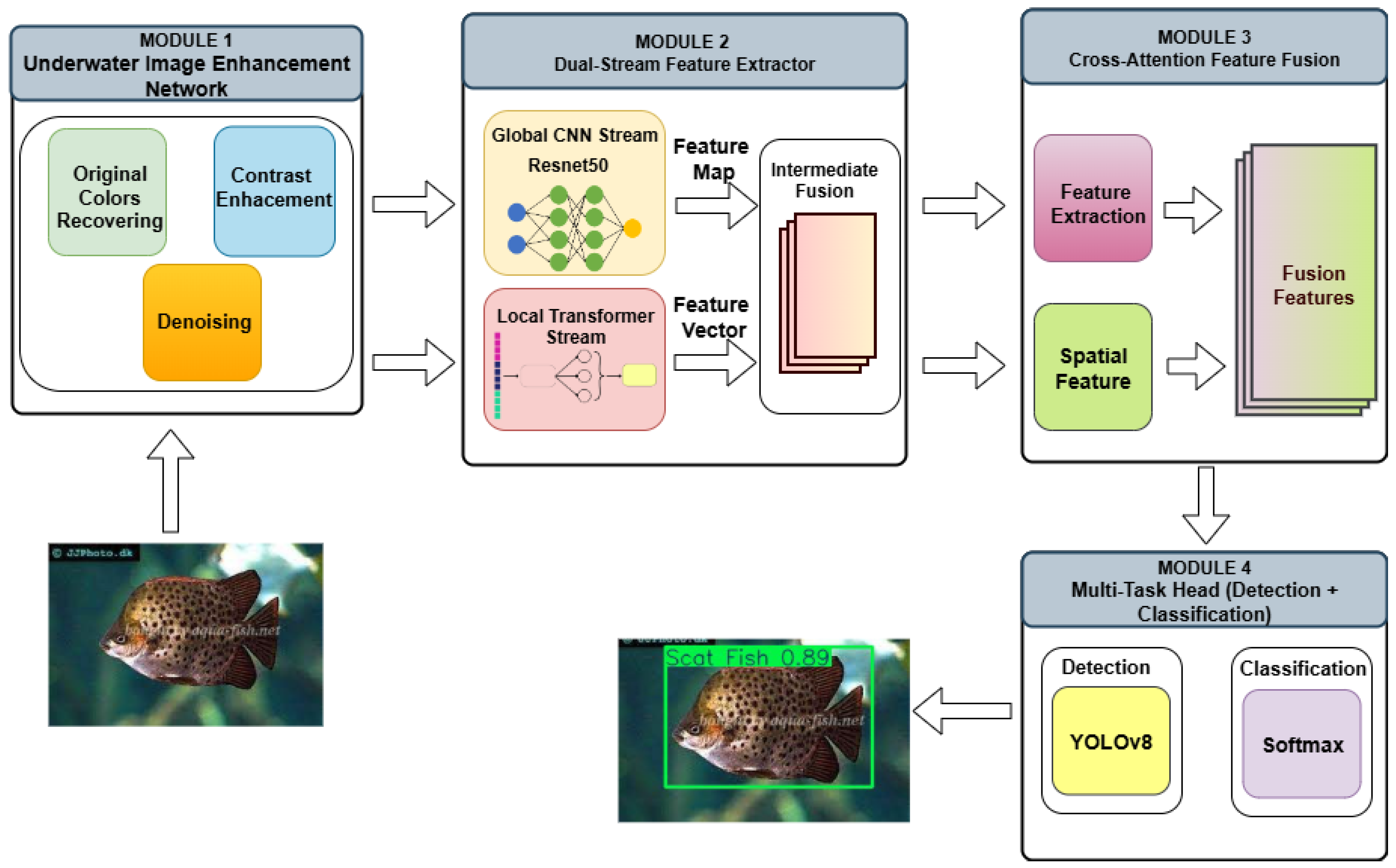 Hamzaoui, M.; Rejili, M.; Aoueileyine, M.O.-E.; Bouallegue, R. DeepFishNET+: A Dual-Stream Deep Learning Framework for Robust Underwater Fish Detection and Classification. Appl. Sci. 2025, 15, 10870. https://doi.org/10.3390/app152010870