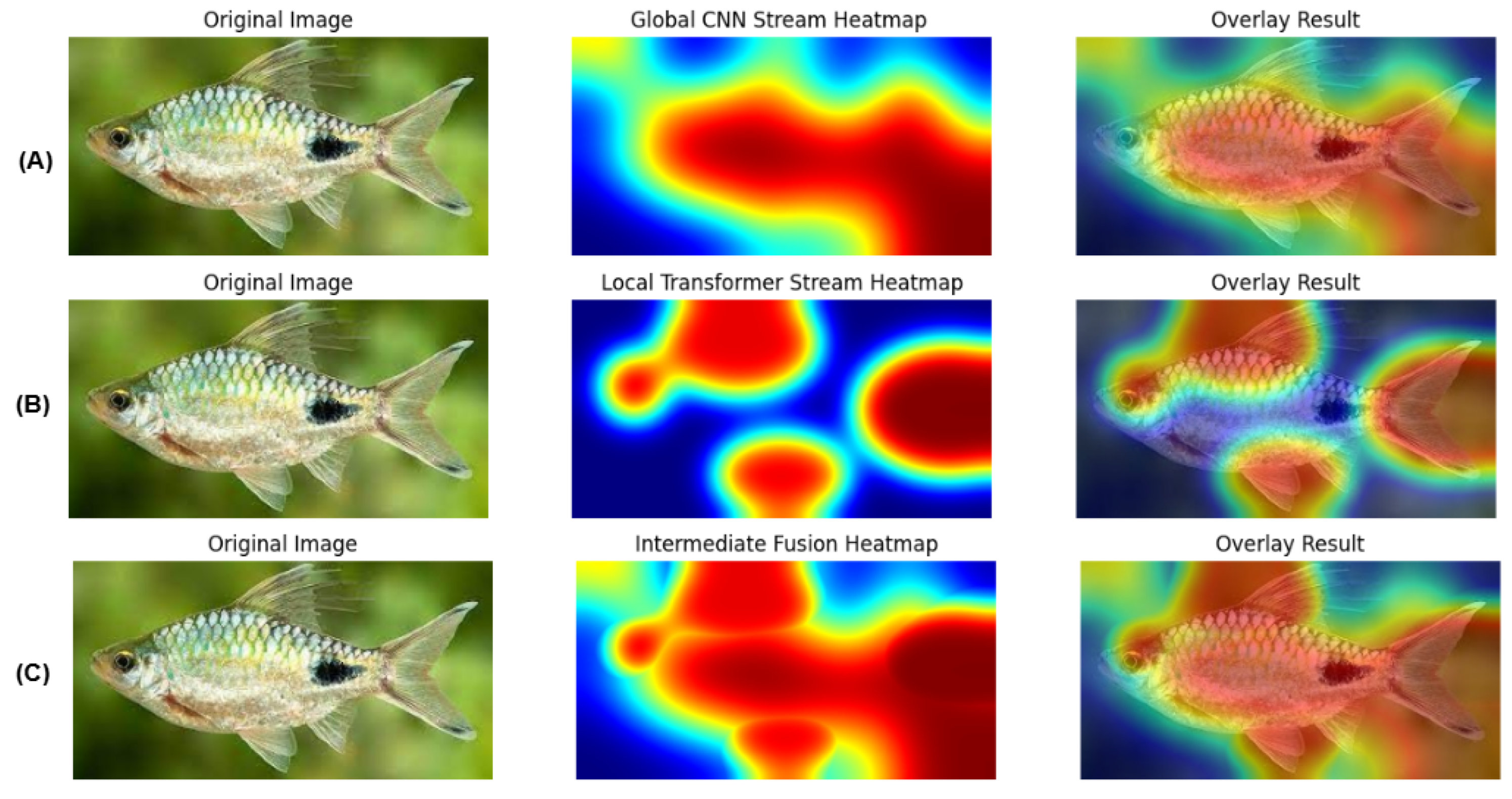 Our work | DeepFishNet+ begins by training a pre-trained VGG16 on ImageNet. DeepLIFT determines heat zones, which are divided into patches. Every two patches representing the same zone are concatenated into a single vector. ViT performs the final classification on these concatenated vectors. | F-DS1, F-DS2 | 99.72% (F-DS2) |