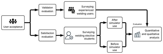 The satisfaction evaluation focused on gathering both quantitative and qualitative data regarding students’ perceptions about the simulator, the skill development, and the potential impact on real welding performance. It was administered in two stages: before and after simulator usage. This way, using a Likert scale, open-ended responses and comparative judgment tasks, a contrastive analysis of changes is possible. The primary objectives of these evaluations were as follows: