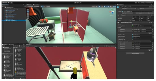 The development of the virtual welding environment began with the installation and configuration of Unity 3D. The 2022.3 version was used and then the physics and player configuration were adjusted to ensure low-latency input handling and accurate collision detection as shown in Figure 4.