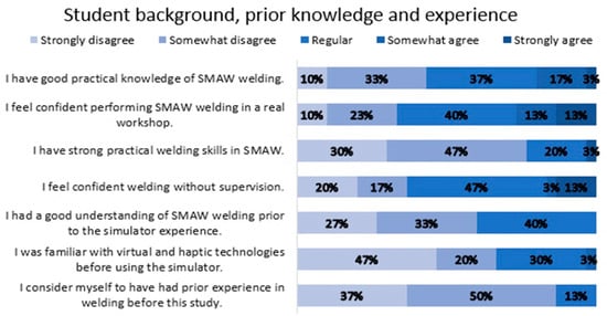 To gather technical feedback, seven participants (see Figure 17) certified or with extensive welding experience responded to a survey that included both a closed-ended Likert scale and open-ended qualitative questions about the simulator’s realism, physical feedback, and fidelity as compared to real welding practice.