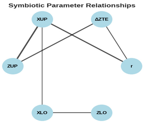 Figure 3 illustrates the symbiotic parameter relationships identified by the Deep Symbiotic Genetic Algorithm (GEO-DSGA) through its interdependency matrix analysis. This network visualization reveals the complex cooperative interactions between NASA geometric parameters that contribute to superior aerodynamic performance, representing a fundamental advancement in understanding parameter synergies in airfoil design optimization. The leading edge radius (r) demonstrates significant symbiotic relationships with both the upper crest position (XUP, edge weight = 0.8) and trailing edge thickness (ΔZTE, edge weight = 0.5). This multi-parameter interaction pattern reflects the fundamental role of leading edge geometry in establishing the overall pressure distribution along the airfoil surface. The strong r-XUP relationship indicates that optimal leading edge curvature must be coordinated with upper surface peak location to achieve favorable pressure gradients and delay flow separation.
