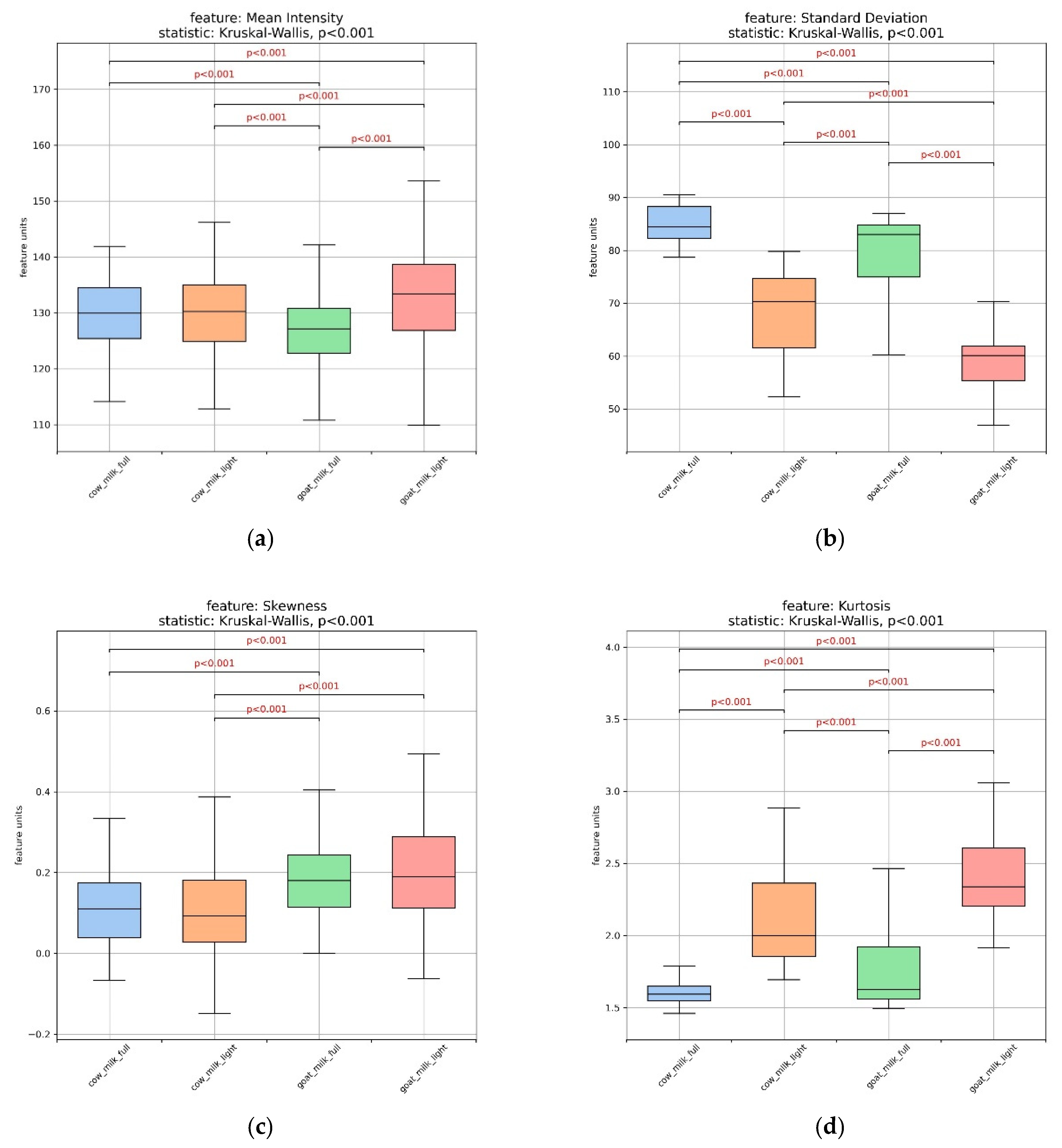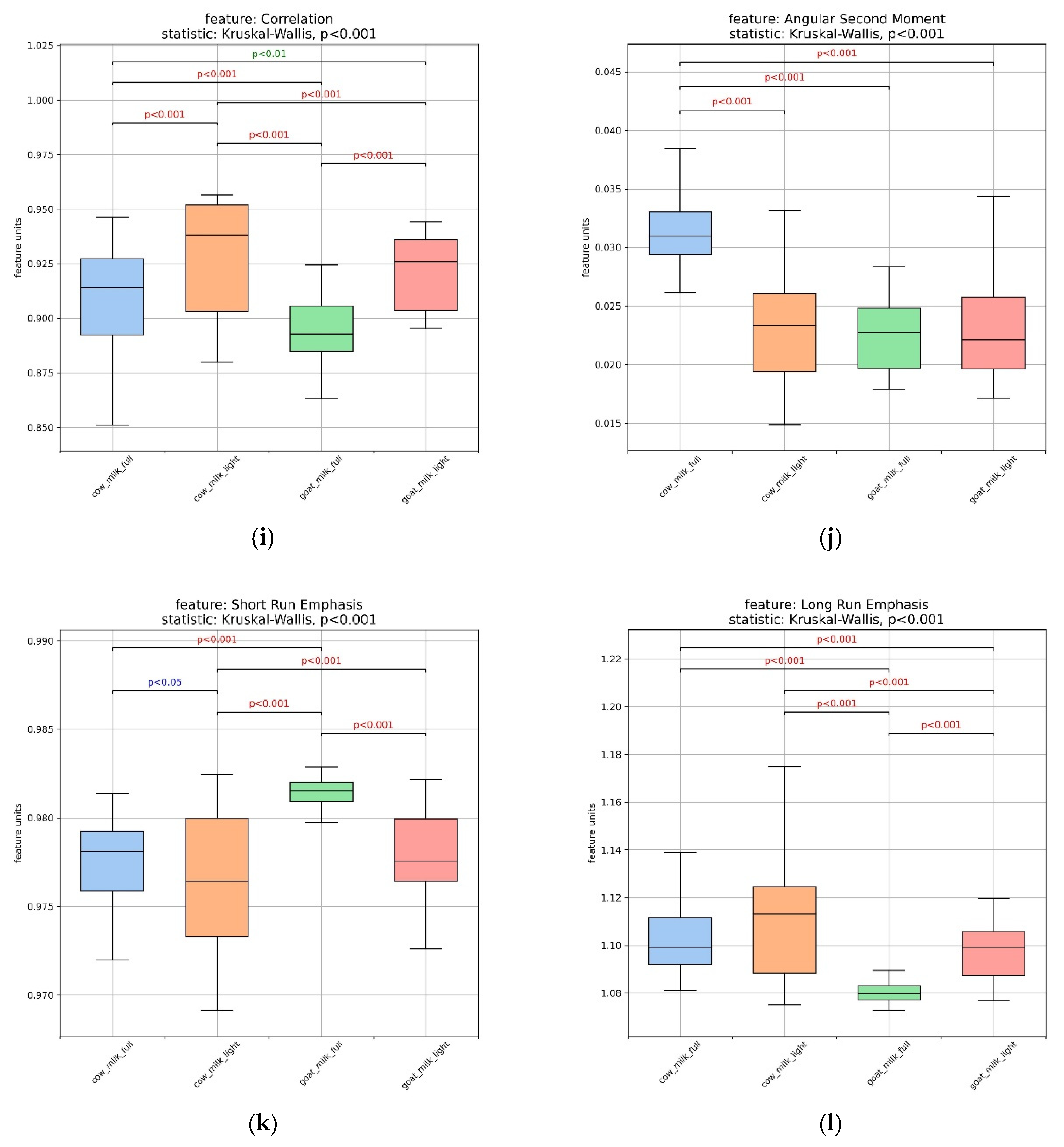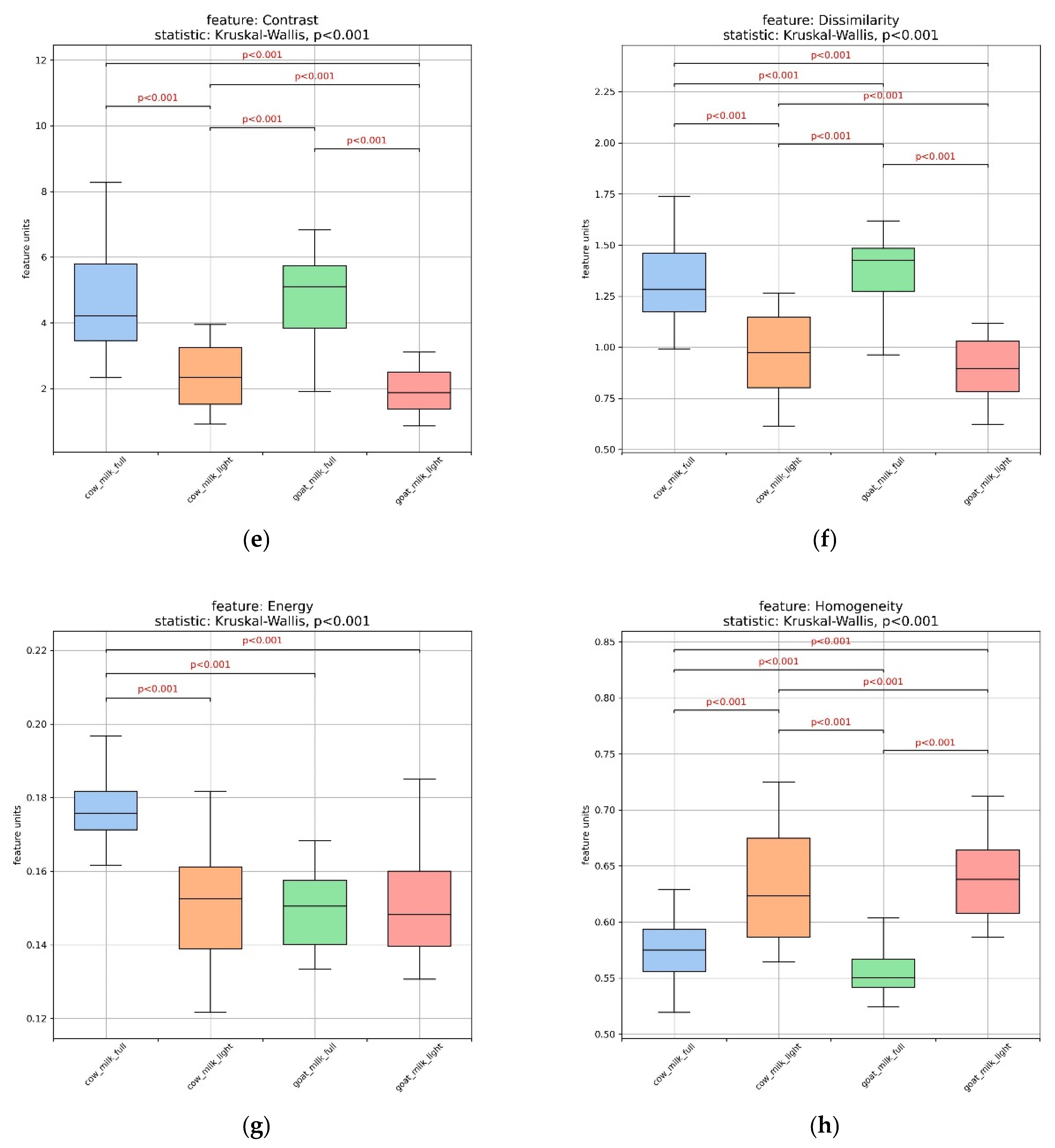 3.2. Assessment of Milk Samples Using Texture Analysis of the Microscopic Images
