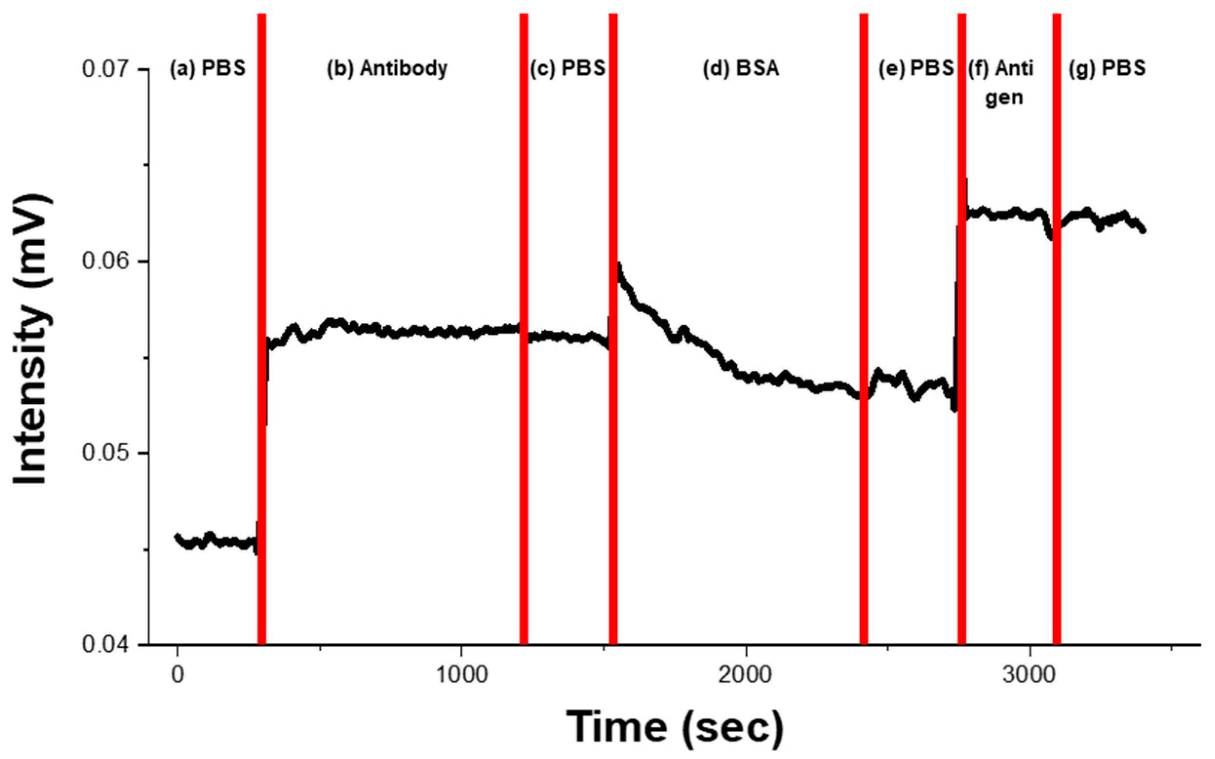 - Jeong, H.H.; Erdene, N.; Park, J.H.; Jeong, D.H.; Lee, H.Y.; Lee, S.K. Real-time label-free immunoassay of interferon-gamma and prostate-specific antigen using a fiber-optic localized surface plasmon resonance sensor. Biosens. Bioelectron. 2013, 39, 346–351. [Google Scholar] [CrossRef]