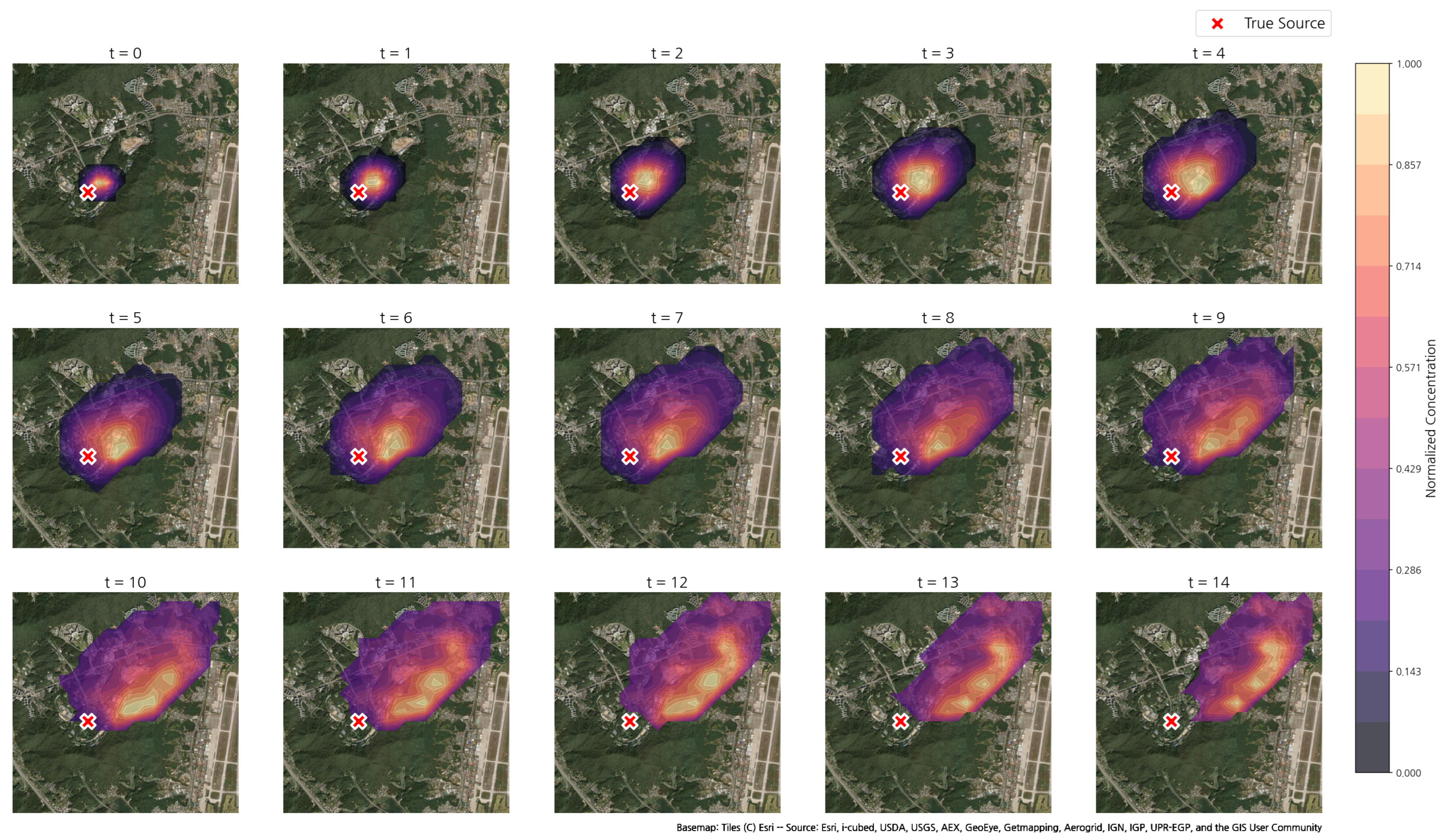 We evaluate on two complementary domains. A controlled synthetic benchmark—flat terrain with stochastic yet strictly causal advection—isolates algorithmic design effects and supplies dual-source sequences for stress testing. In addition, we rigorously evaluate the model using diffusion data spanning diverse experimental conditions and meteorological environments generated via the Nuclear–Biological–Chemical Reporting and Modelling System (