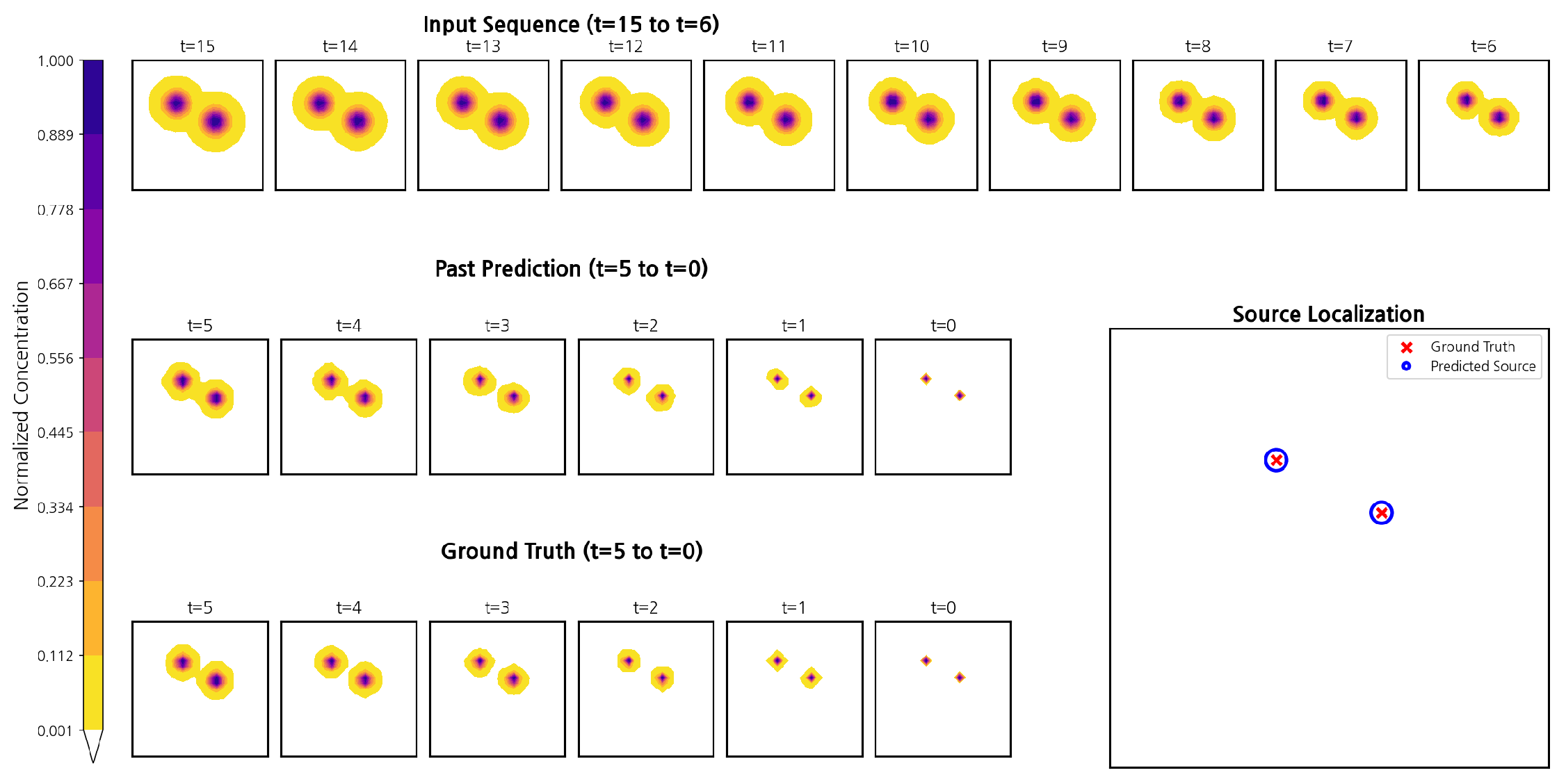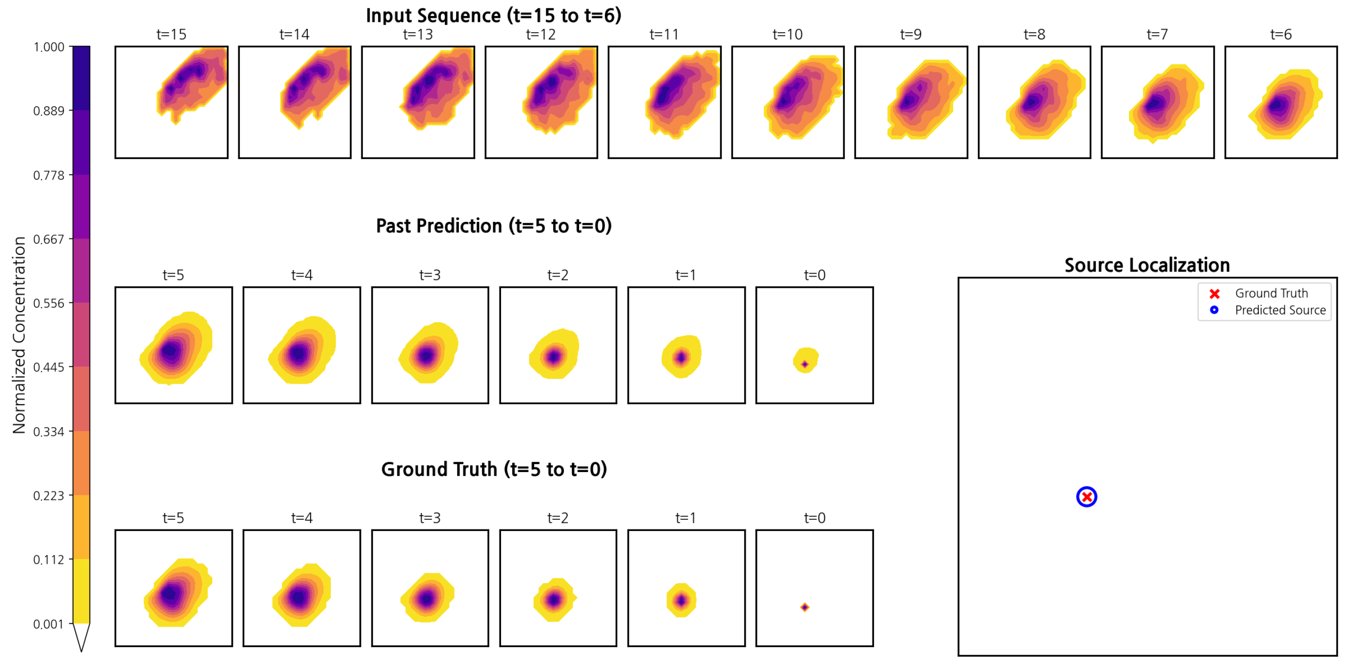 8], yet they typically require explicit wind-field estimates and degrade as resolution or domain size increases. More recently, Transformer-based approaches have recast localization as recursive frame prediction: given recent frames, a model iteratively predicts earlier snapshots until the origin emerges [