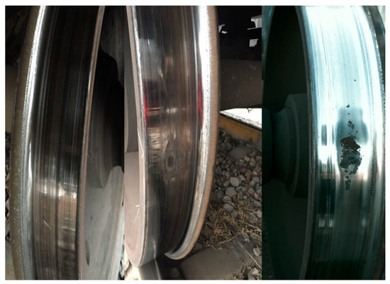 Image of wheelset tread defects. There are three main types of defects—pit, bruise, and peel.